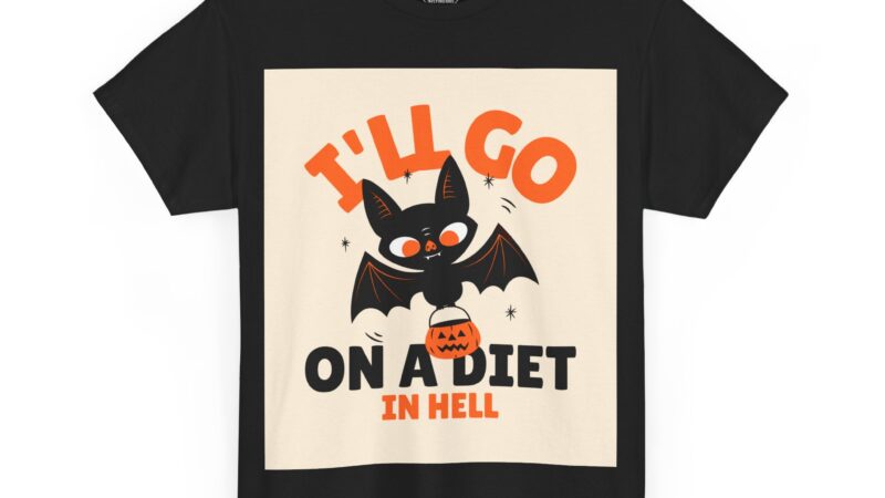 When the goyslop has just too many addictive chemical additives to resist, wear this shirt to let all & sundry know that you’re an early death positive diabetes pro. It’s a perfect blend of memento mori & self-harm-by-food humour, suitable for quadruple bypass enthusiasts & those who just don’t care if 13 big food brands … Continue reading Necrolicious “I’ll Go On A Diet In Hell” Funny Halloween Bat Meme 100% Cotton Unisex Tee