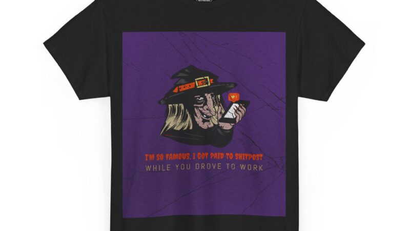 This tee exudes a witty edge, perfect for fans of witchcraft & influencer culture. It can be worn casually or as a statement piece, relevant for Halloween, witchcraft celebrations & goth events. Ideal for those who appreciate dark humor & bold fashion choices. GPSR information: HONSON VENTURES LIMITED, gpsr@honsonventures.com, 3, Gnaftis House flat … Continue reading Necrolicious “I’m So Famous” Funny Influencer Witch Goth Witchcraft Meme 100% Cotton Unisex Tee