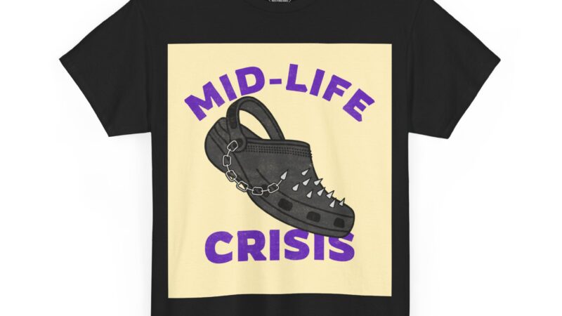 Announce to the world that you are desperately clinging to your last vestiges of edge with this tee. Ideal for ex goths, ex metallers or ex punks who just don’t have age on their side anymore. This tee makes a great conversation starter at child custody hearings, colonoscopies & other age-related medical screenings. … Continue reading Necrolicious “Mid-Life Crisis” Funny Ironic Goth Metal Crocs Meme 100% Cotton Unisex Tee